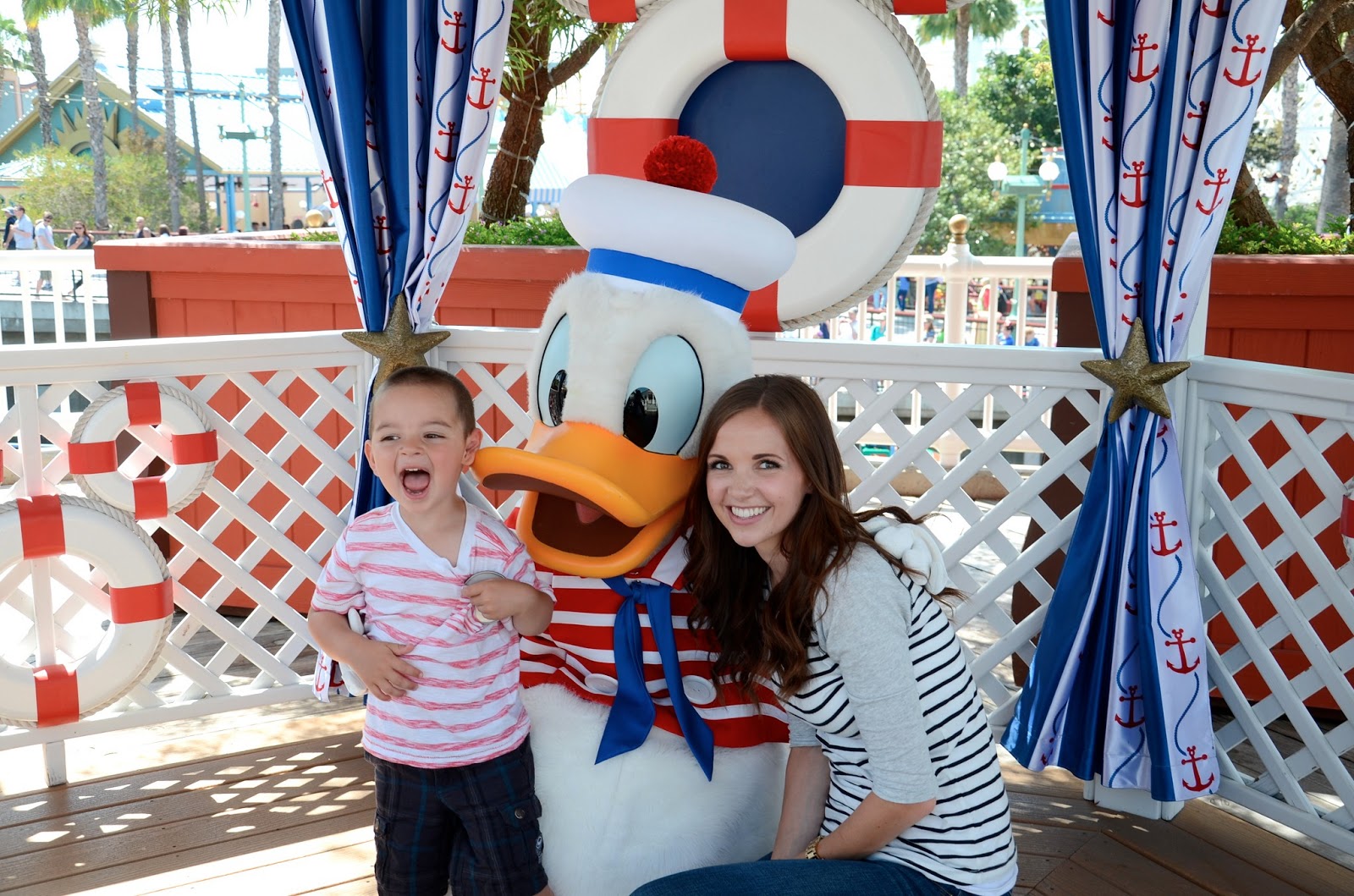 Looks like a great time was had by all. Funny about the frisbee. Curious, where did you get that top in the California Adventure pics(gray sleeves, white w/navy stripes on the rest)?