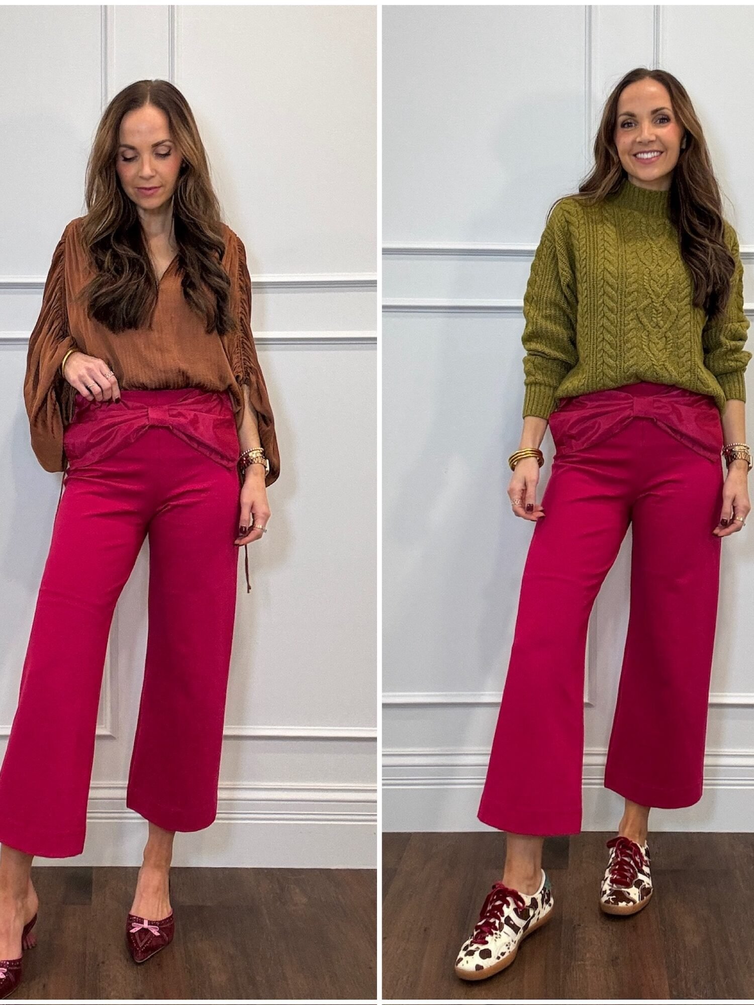 Statement pants can feel a little bold, but they’re actually way more versatile than you’d think. I’m showing how to style five pairs of standout pants two different ways, a dressed-up look and a dressed-down look, so you can get more outfits out of the pieces you love.