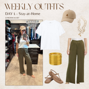 This is an outfit I’d wear during those 75+ degree “fall” days when running errands, going to kids’ sports games or being comfy at home!