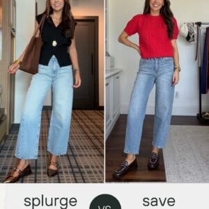 This is a great, elevated outfit to wear to more casual outings, such as helping in a kids’ class, lunch with friends, and more. I love the color combination of the denim and burgundy!