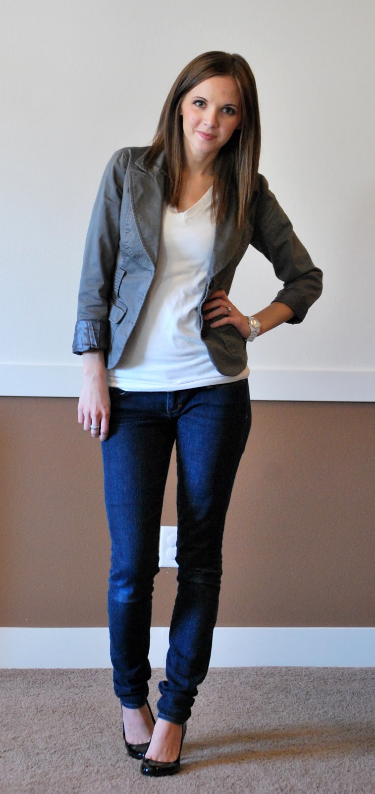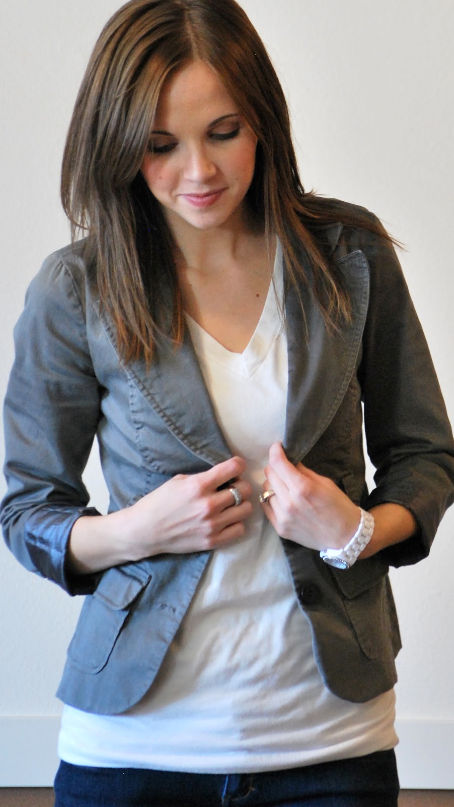 blazer: f21, white t-shirt: target, jeans: abercrombie (altered), heels: target (same shoe, different color), watch: dillards (gift from Philip)