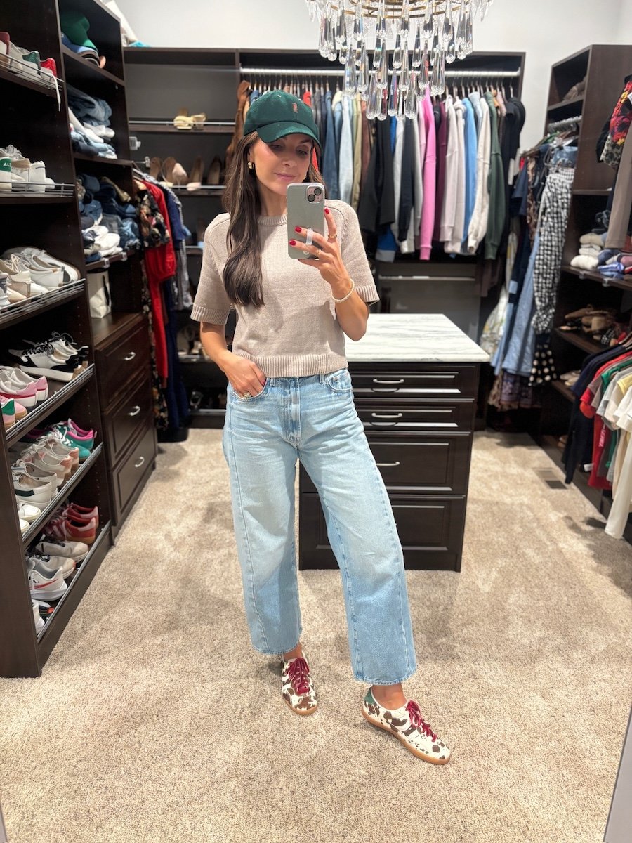 This is the easiest way to get in the fall mood without breaking a sweat. I love a short-sleeved sweater, and it’s the perfect piece to add during this warm-weather fall!