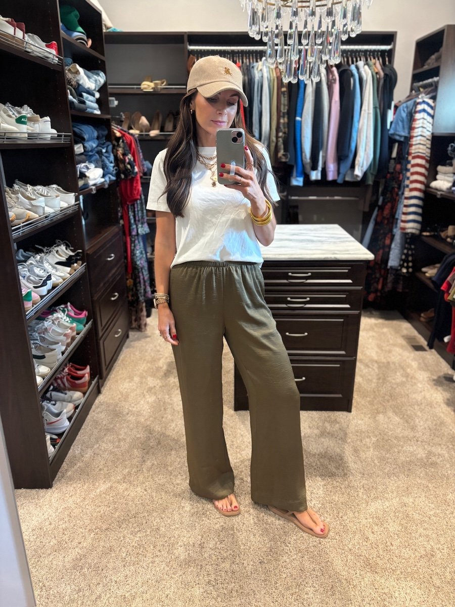 OUTFIT 2: AE HAT | ARITZIA SHIRT | SIMILAR SATIN PANTS | CROC SANDALS